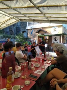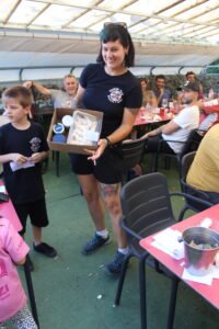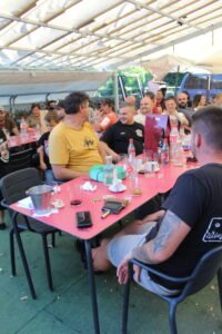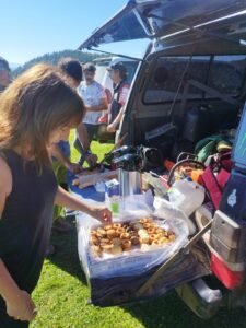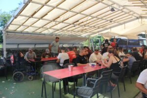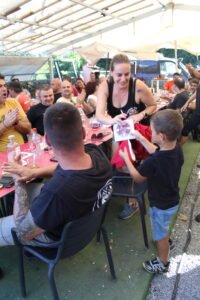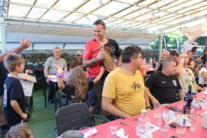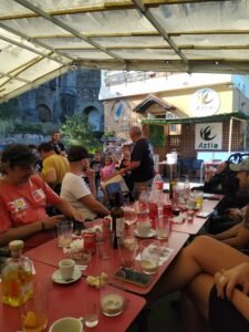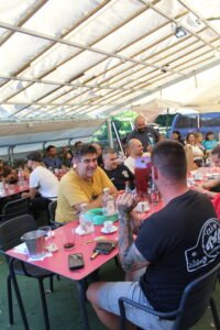 Una ruta en la que hubo tanto pista para principiantes, subidas y bajadas con piedras y escalones, cortafuegos, pozas y trialeras para los más atrevidos. A media mañana se hizo una parada en el mirador de Alén, lugar con vistas impresionantes, para tomar un hamaiketako. Tras atender a algún herido de guerra, regresamos a Muskiz, al gastrobar Aztia, para degustar una comida en familia, que se culminó con sorteos de material donado por los empresarios pertenecientes a la asociación, equipatuaventura, plasma 4×4 y a un anónimo.